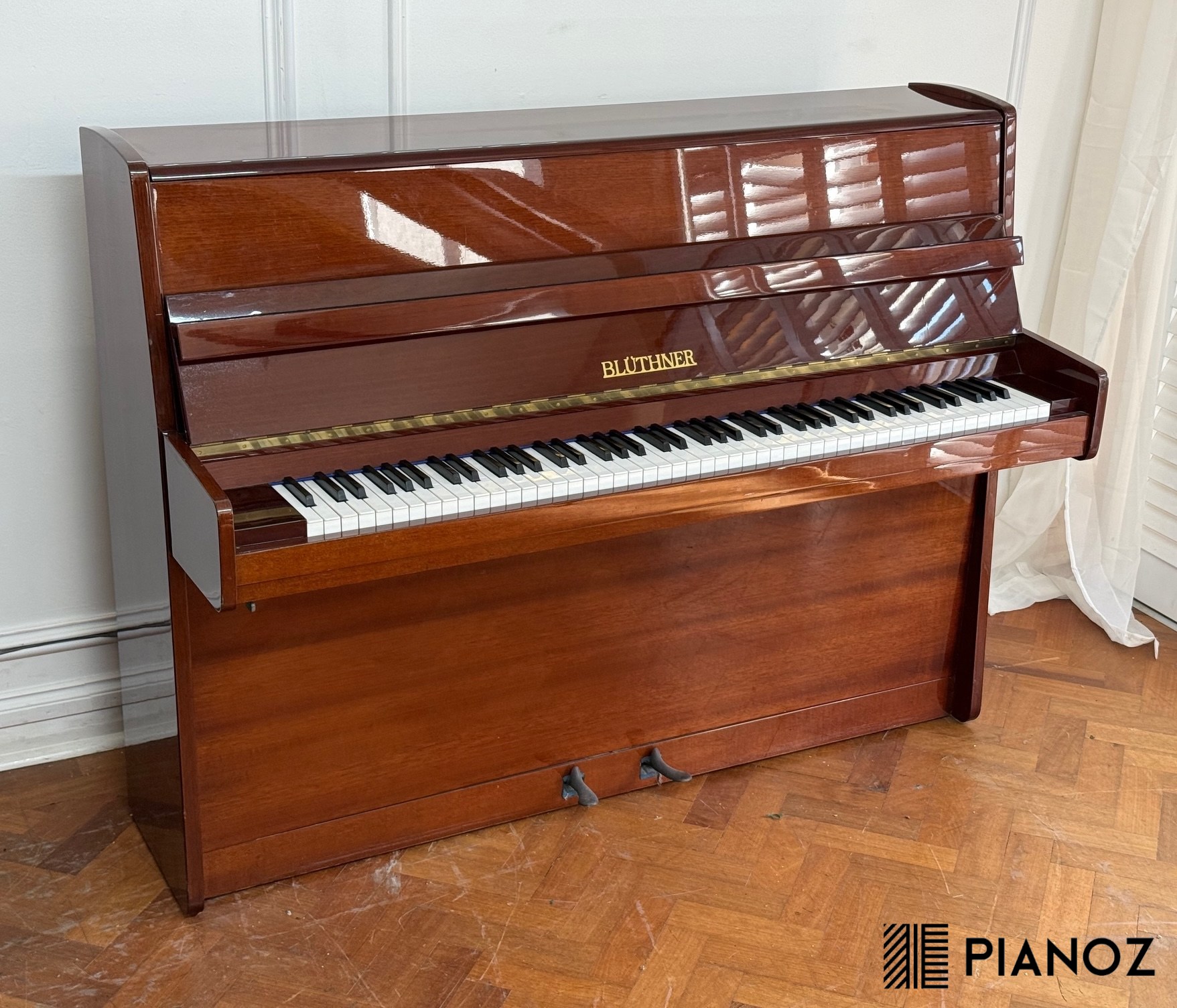 Excellent tone and action as one would expect from a modern Bluthner upright piano. These pianos always have an incredible resonance and characteristically "german" tone, one of the best small uprights you can buy