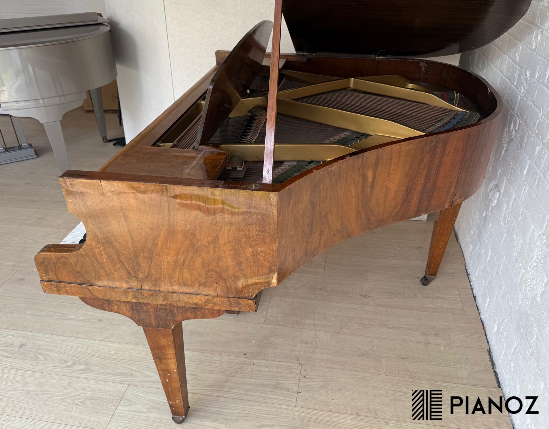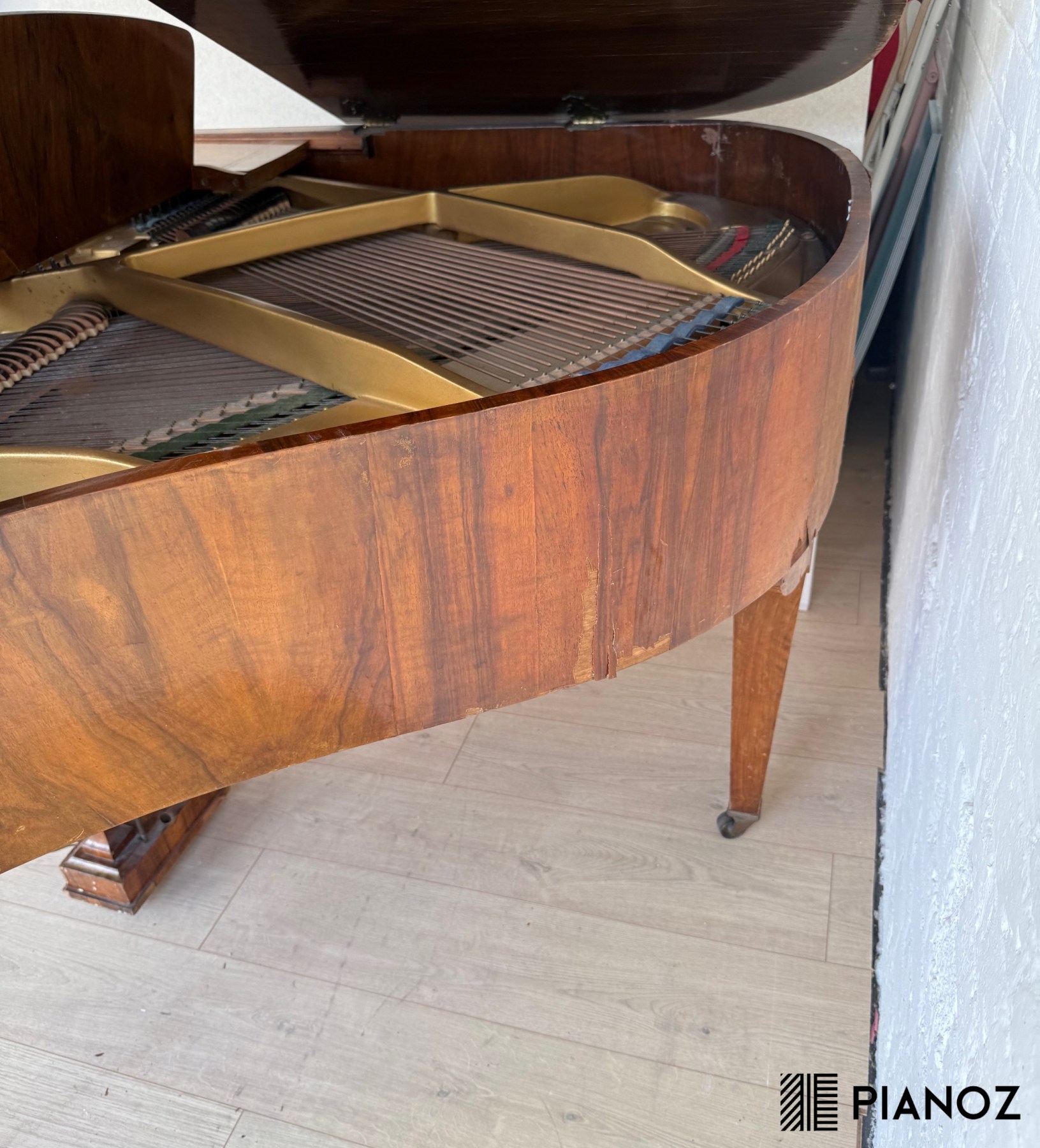 The casework veneer has some ripping and damage over time hence the bargain price. In perfect cosmetic condition we sell these pianos for about £2999
