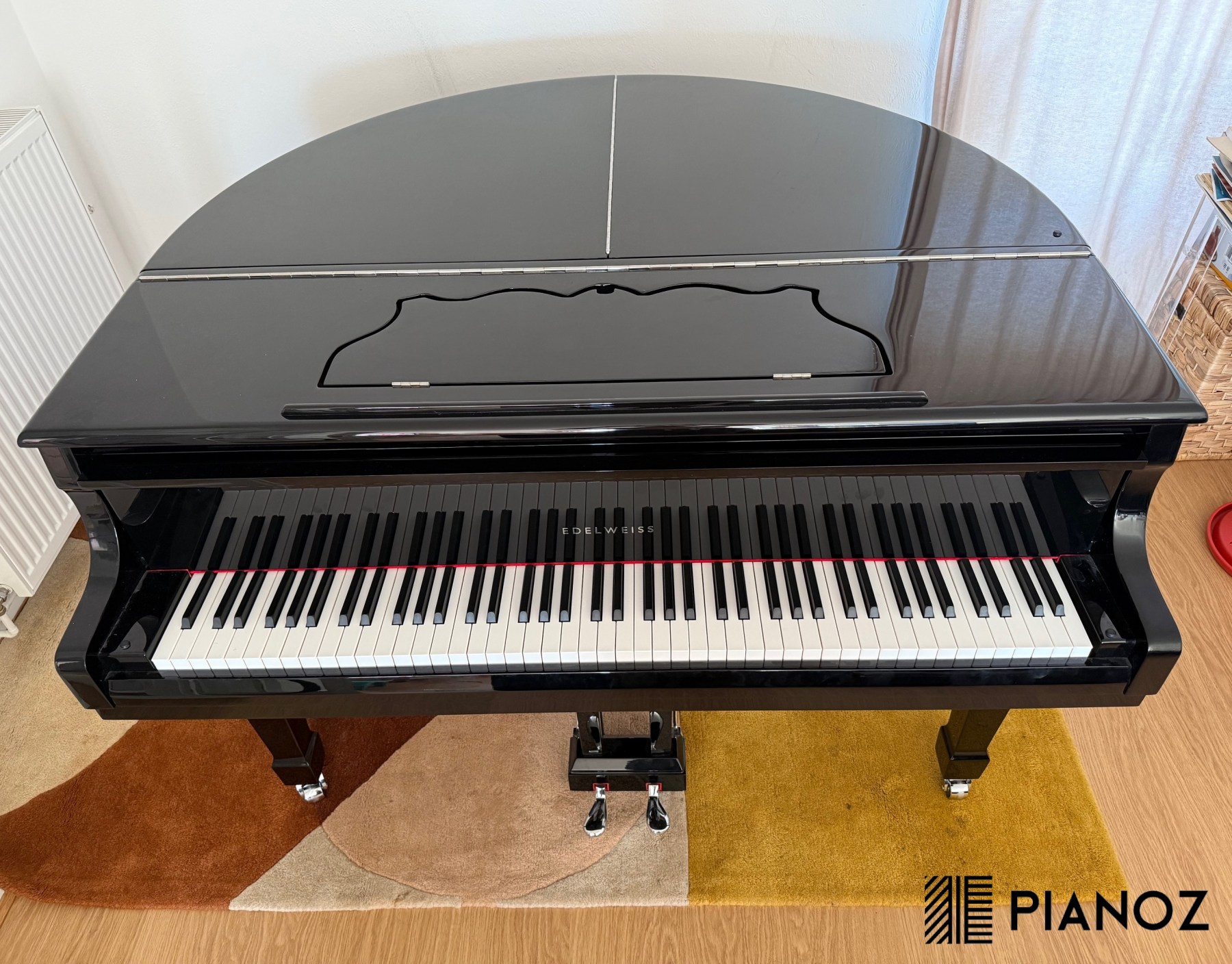 An Edelweiss G50 Sygnet baby grand piano in a black high gloss case