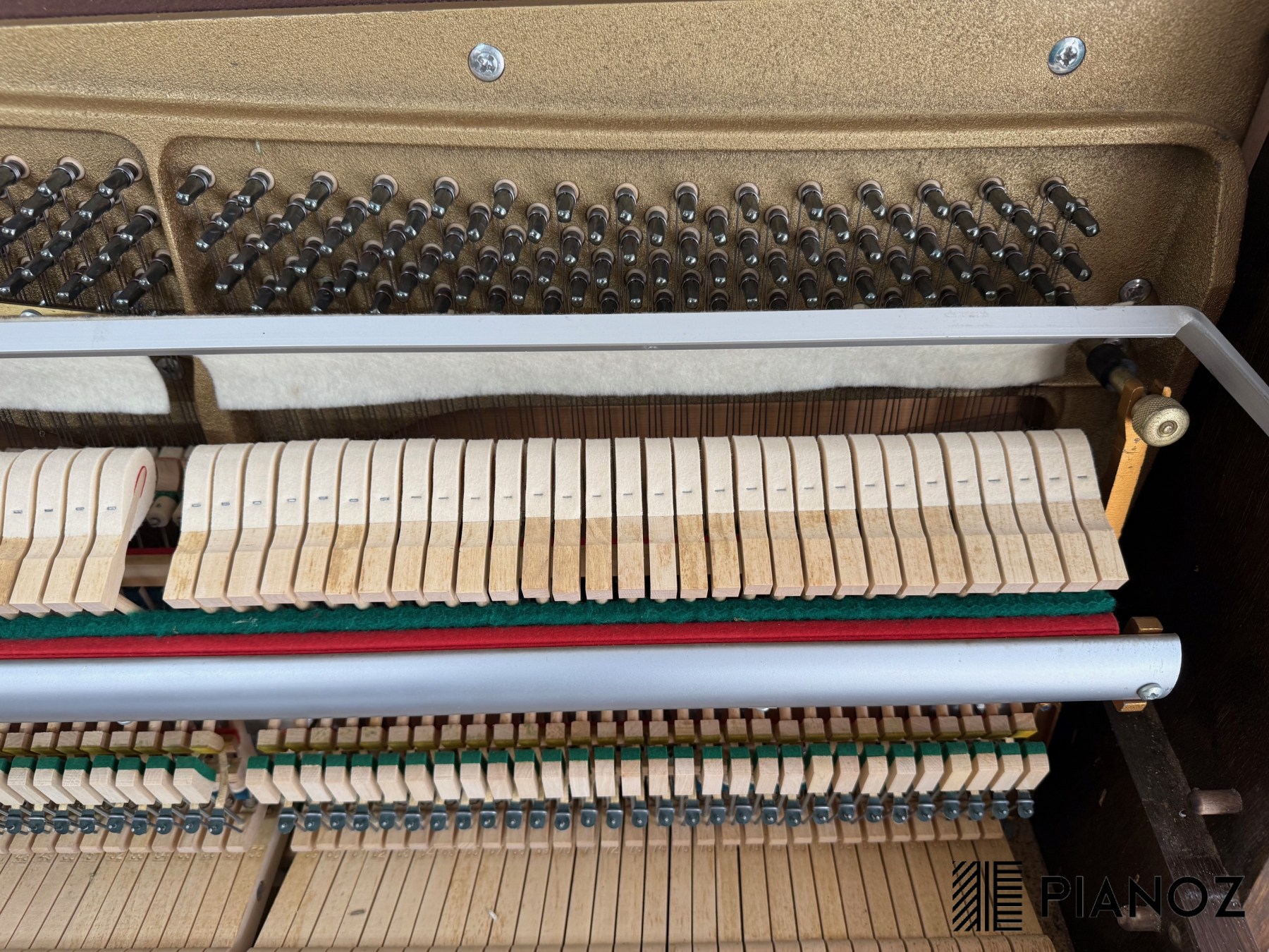 This is a modern piano dating from the 1990s or so but the casework has been built to look older and more like a traditional antique upright piano. The benefit of this is you get a traditional looking instrument, but the reliability of a very well built modern upright piano