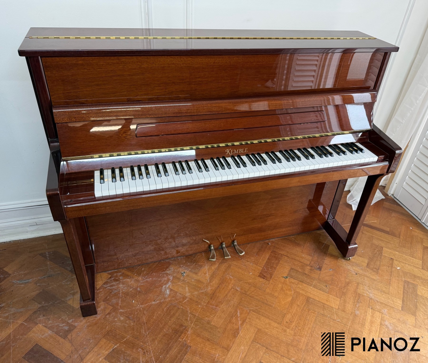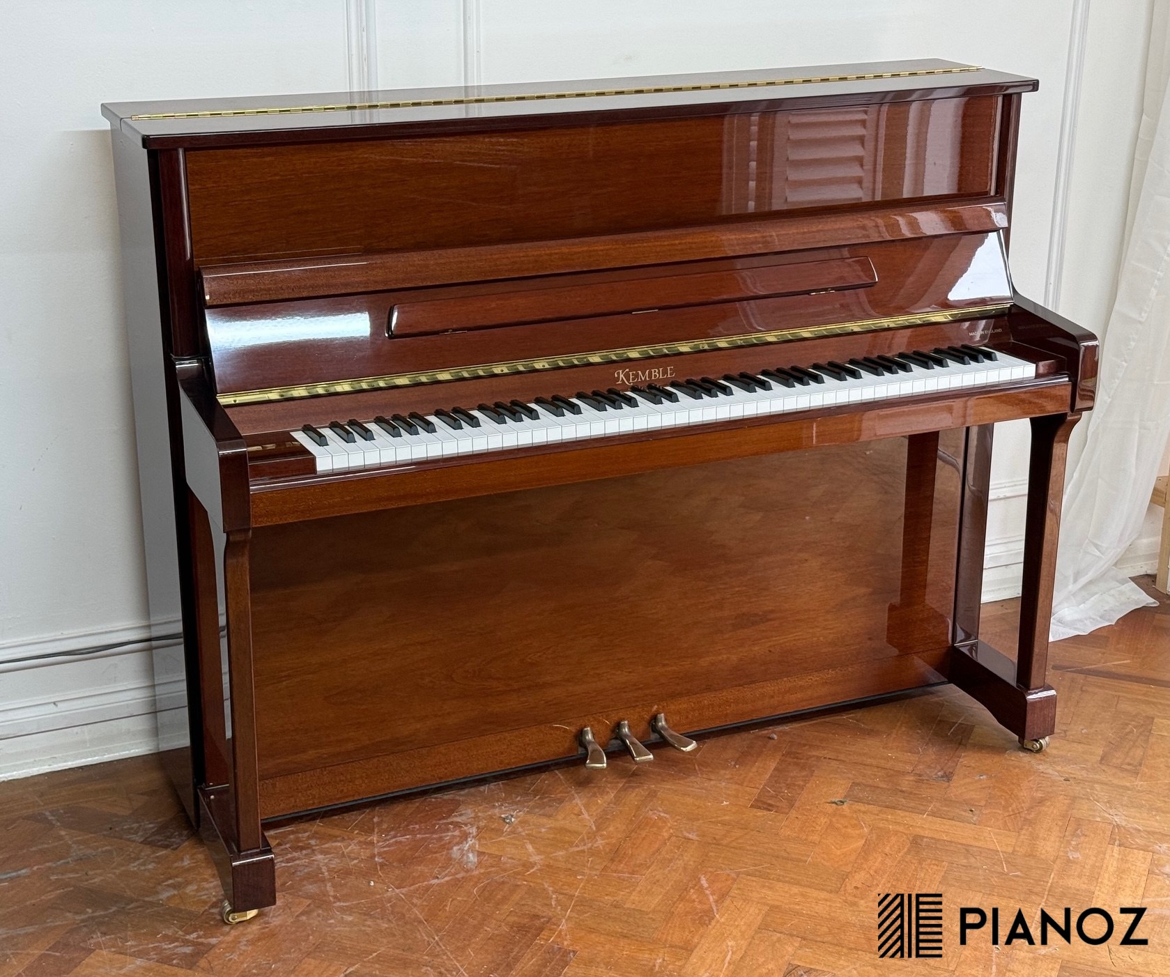 A Kemble Windsor upright piano in a high gloss wood case, handmade in the UK in 2002/2003
